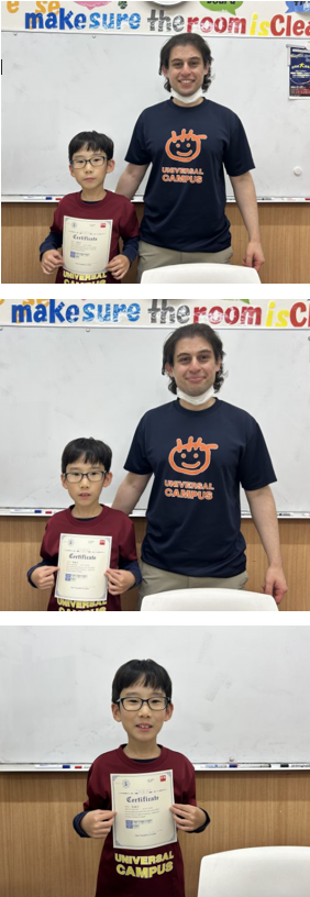 ユニバーサルキャンパスに通い始めて2年になる小学6年生のTくん。普段はAK(アドバンスキッズ)クラスに在籍しています。試験前は単語帳やテキストを使ったり過去問を解いて英検の対策をがんばり、見事準2級に合格しました!