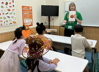 みんなで仮装をして楽しくレッスンに参加♪ Punpkin, Jack-o’-lantern, Vampire, Batなど、ハロウィンならではの単語を学んだり、習った単語を使いながらハロウィンにまつわる工作も行いました!