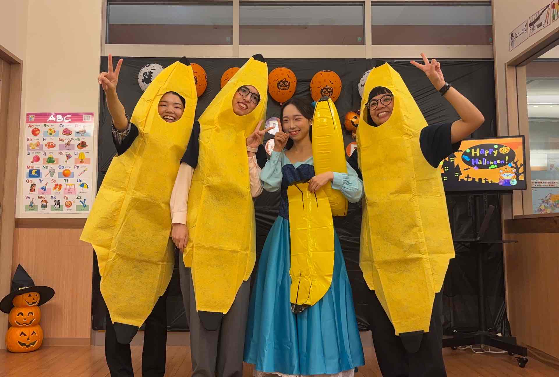 日本でも少しずつ身近に感じられるようになってきたハロウィン!ユニバーサルキャンパスでは22校がそれぞれのスクールで自分の先生達とユニキャン生やその知り合いの方々、多くのお子さん達と一緒にハロウィンパーティを楽しみました!!彩都校では、キリル先生とジェシー先生と、ハロウィンの英単語や工作、ジャコランタンの表情を揃えるカードマッチゲームやピンポンゲームをしたり、部屋を暗くしてモニターを使ったモンスターの絵本の読み聞かせやハロウィンVer. の“みっけ”の絵本を使った英語レッスンがありました。どちらのお話も生徒さんが参加型で声を出しながら一体感と臨場感のあるお話でした。パーティの最後には、ガーデンモール内のお店を回ってキャンディをもらう“Trick or Treat”(トリックオアトリート)もしました♪(コロナ明け4年振りの復活)多くのお店の方々のご協力がありました。【セリア/ドラッグユタカ/私のお針箱/ビューティガーデン/7milebridge/フレンドマート彩都店/ヤマハミュージックセンター彩都】皆さんそれぞれに素敵な仮装で参加して下さり楽しい時間を過ごすことができ、またおひとりおひとりにとってステキな経験や楽しい思い出になってくれたと思います☆★キリル先生とジェシー先生も仮装がお似合いでした!Happy Halloween♪